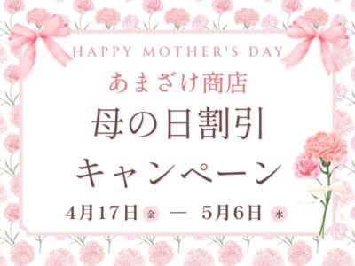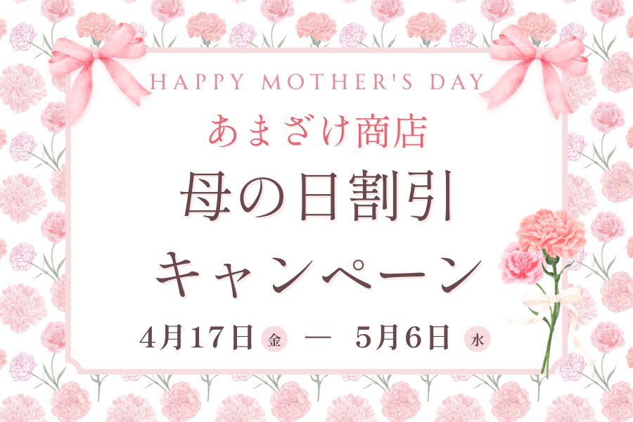 5月10日は母の日ですね。皆様は何かもう準備されましたか? 本記事では母の日の由来についてと、まだプレゼントが決まっていない方に向けて、本日4月17日(金)から開催する「あまざけ商店」の割引キャンペーンのご紹介をしていきます。 母の日の由来 母の日とは、母への感謝の気持ちを表すことを目的とした記念日です。日本では5月の第2日曜日に祝われ、花やプレゼントを贈る文化が定着していますが、その起源は海外にあります。現代の母の日は、20世紀初頭のアメリカで「母への感謝を社会全体で表す日」として生まれました。 カーネ ...