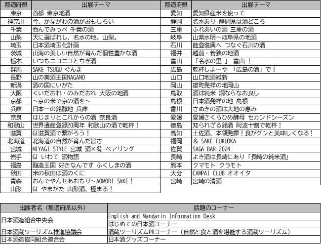 内容 | ① 第16回全国日本酒フェア:全国45都道府県の多彩な銘酒を試飲・購入可能 ② 令和5酒造年度全国新酒鑑評会 公開きき酒会:本年5月の「全国新酒鑑評会」入賞酒約400点を試飲可能 ③ 日本酒セミナー:日本酒の飲み方楽しみ方など様々なテーマのセミナーを開催 |