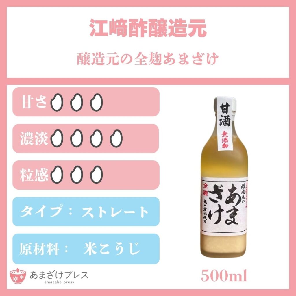 甘味が濃厚で2倍に希釈して使用して頂く濃縮タイプの甘酒です。米こうじ由来の粒が残っており飲んだ後の満足感も高い製品となっております。
