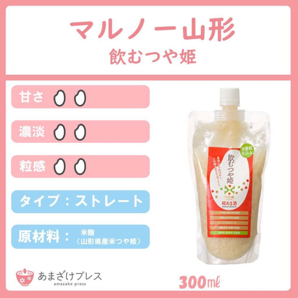 つや姫の特徴でもある上品な甘さ、旨みが感じられる優しい味のあま酒です。よく冷やしたり温めてそのままお飲みください。