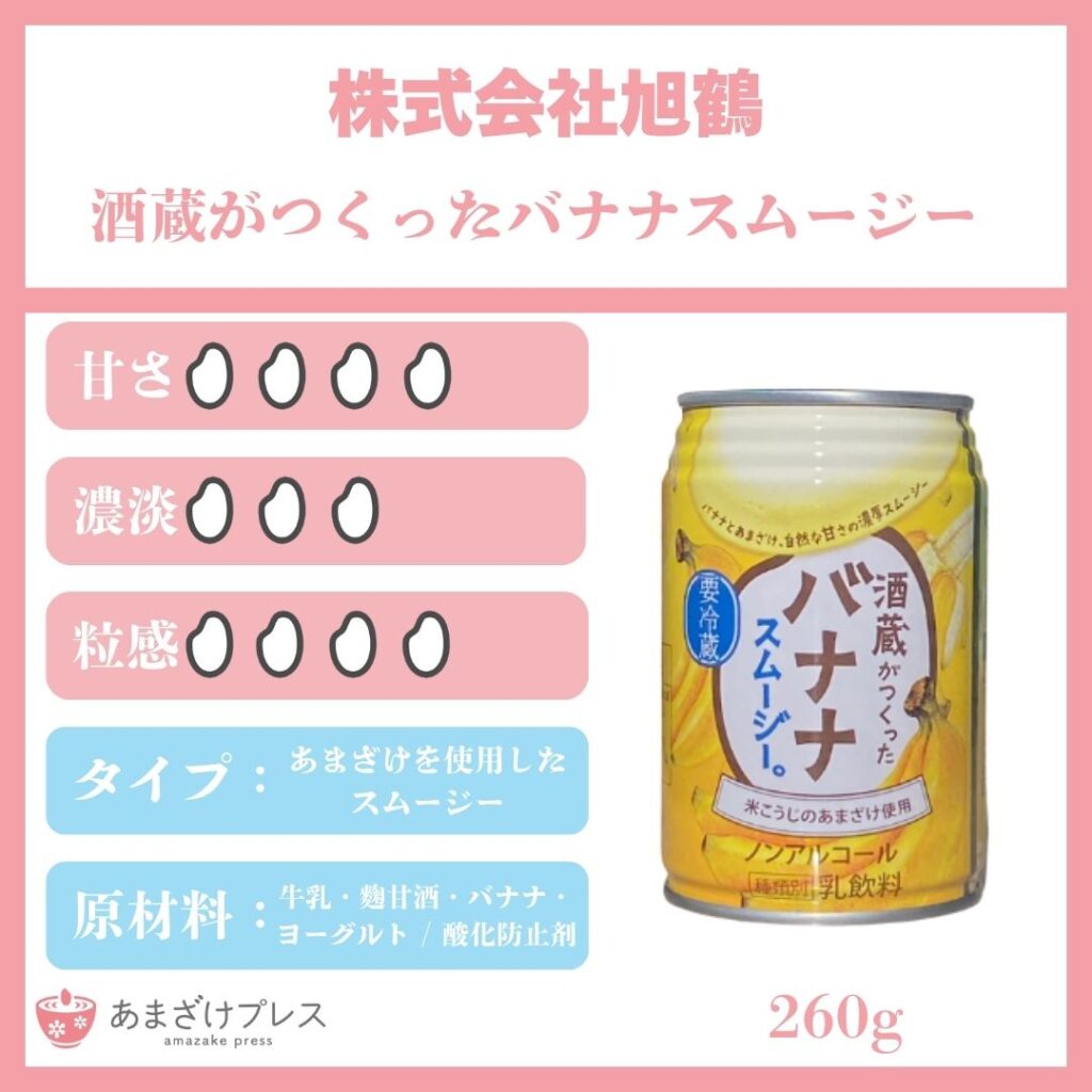甘酒のまろやかさとバナナの濃厚な風味が調和し、満足感がありながら後味はすっきり。