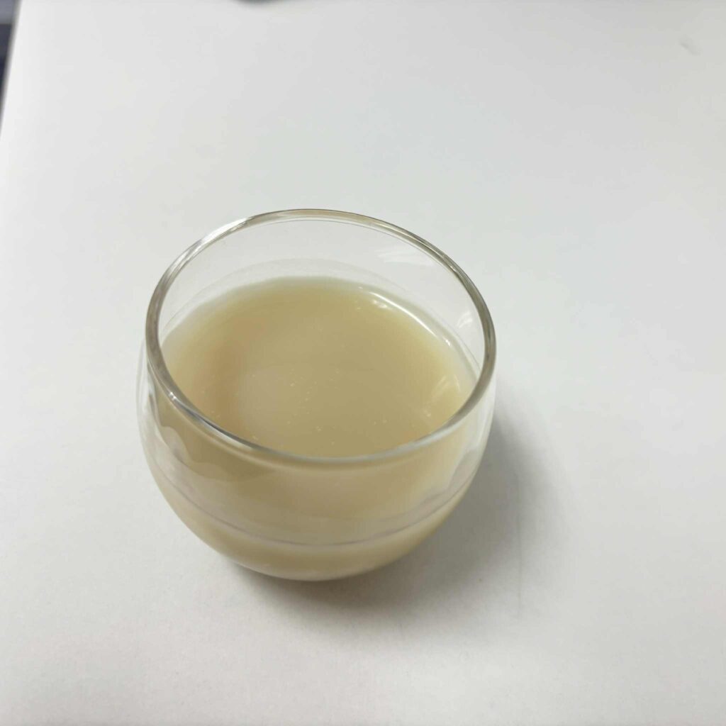 見た目は粒感がなく、さらさらとした印象で、やや濃いめの色合いです。香りは麹の華やかさが際立っています。