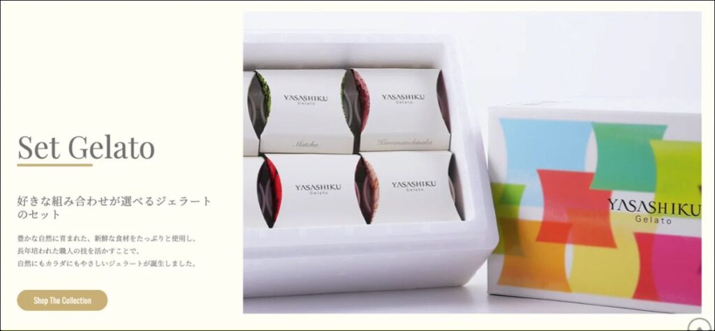 新サイトでは、YASASHIKU Gelatoおすすめの商品や季節限定商品などの組み合わせて購入できるセットが登場しました。ご家族やご友人とのおまとめ買いもおすすめです。この機会にぜひ複数種類のフレーバーをお楽しみください。